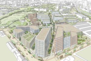 14th July 2023 The first phase of proposals for a £2.5bn development in Salford been handed over to local councillors. The English Cities Fund (ECF) has submitted outlines for a 1.7 million sq ft innovation district and 933 homes within a site between Broughton Road East and University Road. The site sits in close proximity to Salford University, Salford Royal Foundation Trust, and MediaCity. The initial proposals include: 1.4 million sq ft of ‘commercial innovation floorspace’; 25,000 sq ft of retail and leisure space; a 260,000 sq ft multi-storey movement hub with parking; and 71,000 sq ft of learning facilities. It would see all buildings within the site, called Crescent Innovation North, demolished except for Innovation House, which would be refurbished. The wider Salford Crescent masterplan, which covers 240 acres of the city, includes proposals to construct 145,000 sq ft of retail space, a 165,000 sq ft hotel, 2.4 million sq ft of research and industry space, and over 2,650 homes. Set up in 2001, ECF is a strategic joint venture between Muse, Legal & General, and Homes England. It was recently selected to deliver the next phase of nearby Stockport’s regeneration. Make Architects is leading the project’s design while CBRE are advising […]