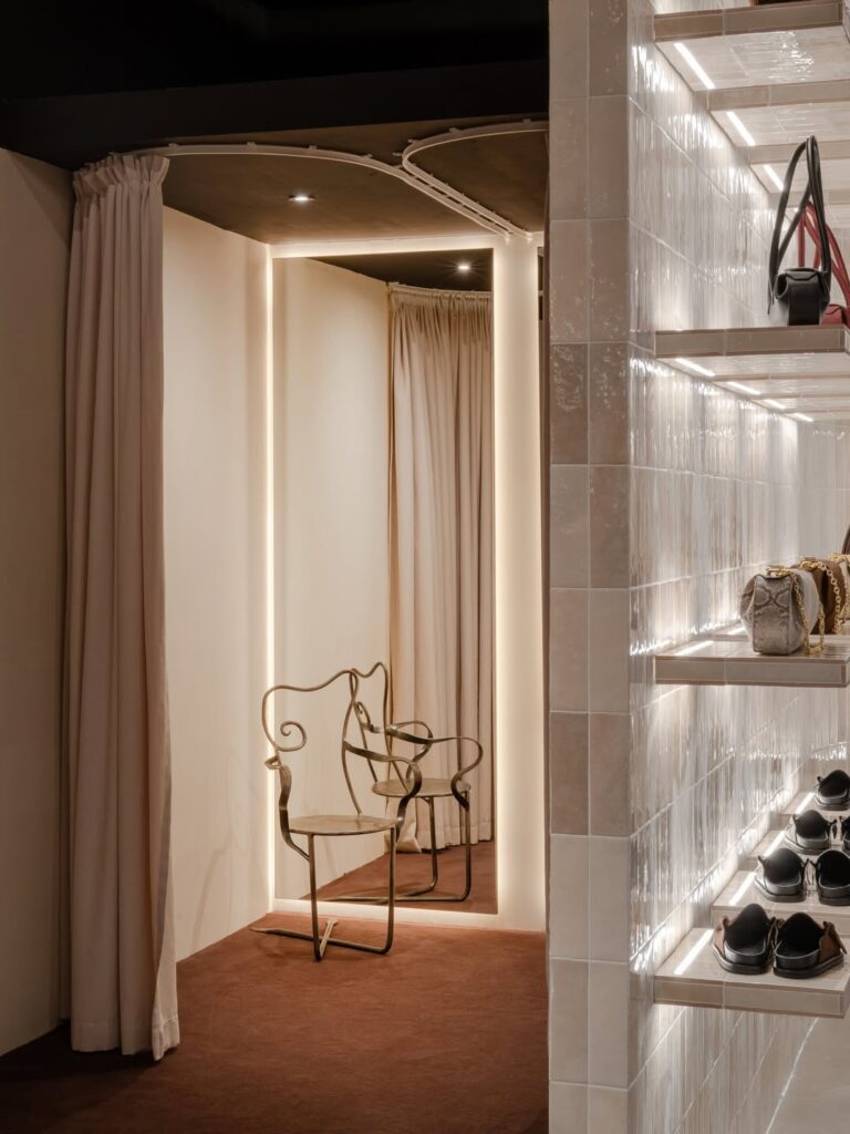 The luxury handbag brand’s new space, which extends to approximately 1,000 sq ft, has been designed by DBM studio as a physical embodiment of the Yuzefi bag itself.